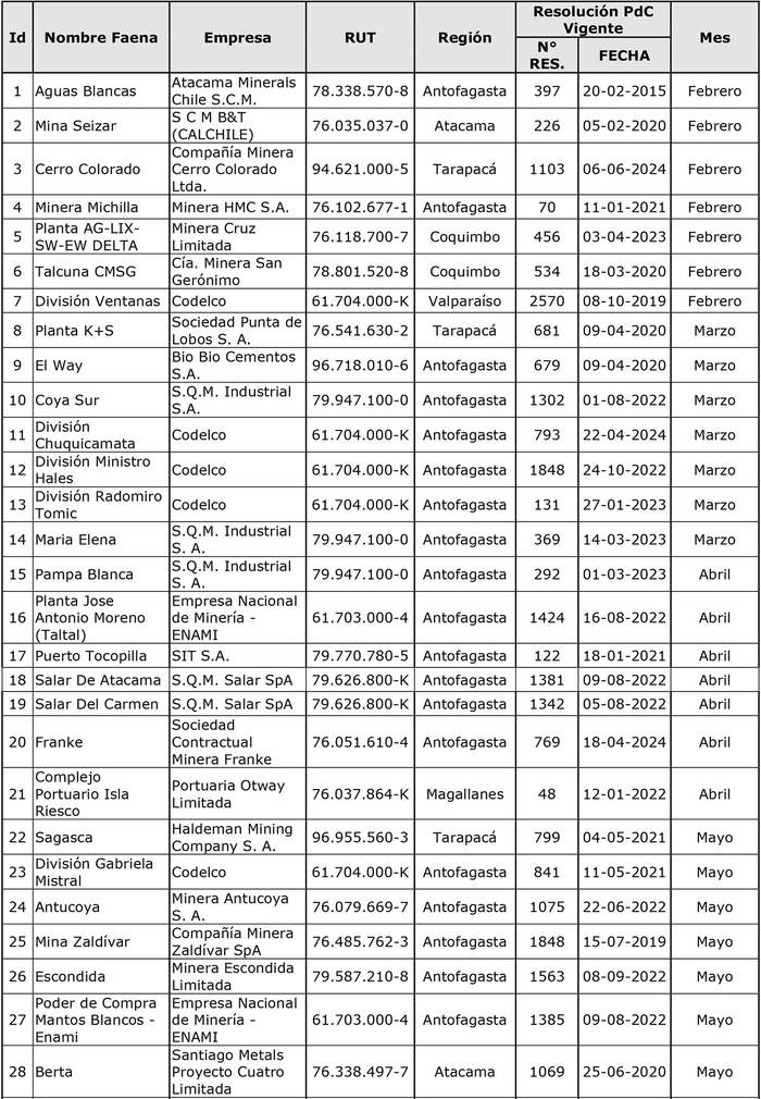 ESTABLECE EL PROGRAMA DE AUDITORÍAS PERIÓDICAS DE PLANES DE CIERRE PARA SER PRESENTADAS EL AÑO 2025, DE ACUERDO CON LO ESTABLECIDO EN LA LEY N° 20.551 QUE REGULA EL CIERRE DE FAENAS E INSTALACIONES MINERAS, SU REGLAMENTO, Y REQUIERE PUBLICACIÓN QUE INDICA