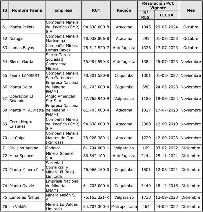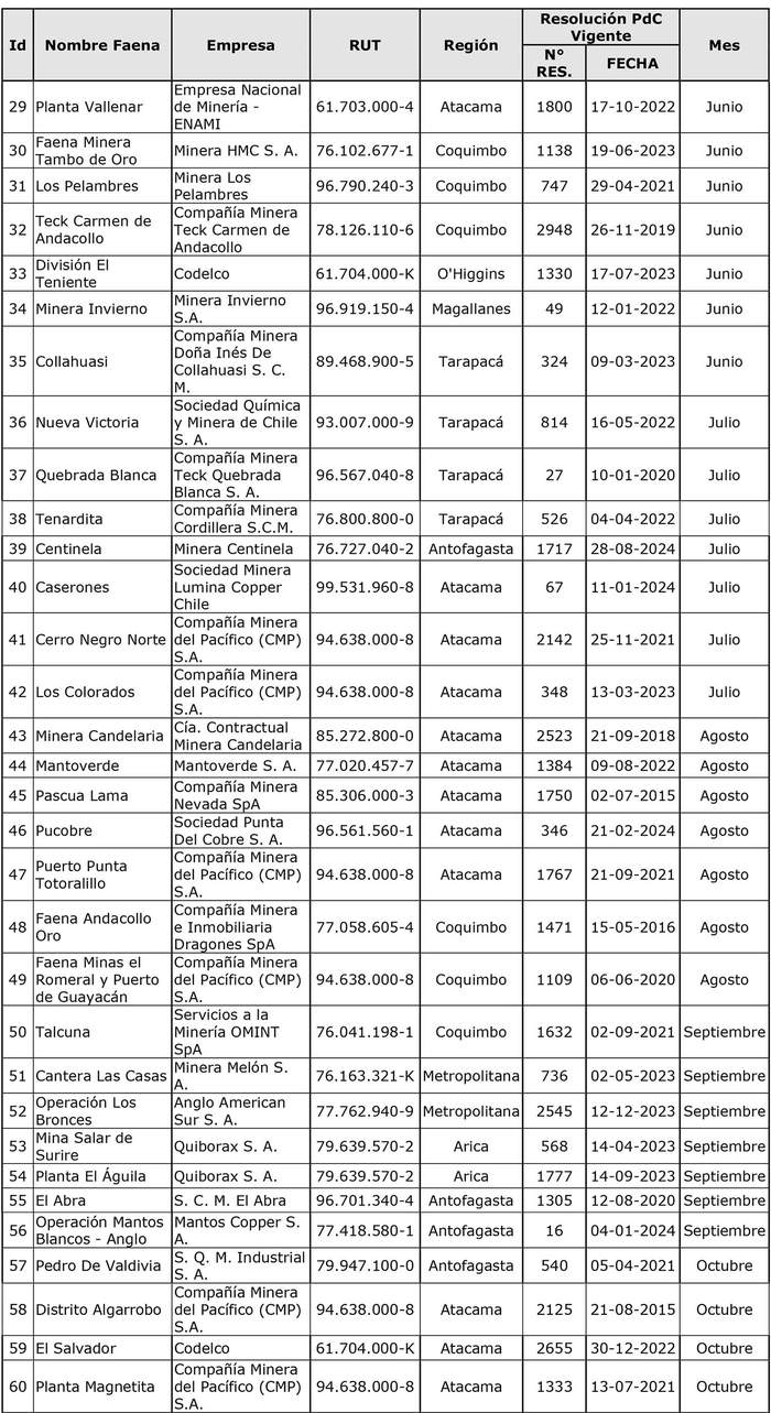 4. Que, las faenas mineras que se encuentran listadas en el resuelvo 1, corresponden a aquellas cuyos planes de cierre originales fueron aprobados en los años 2015 y 2020. En consecuencia, les corresponde ejecutar la auditoría periódica exigida en la ley N° 20.551.