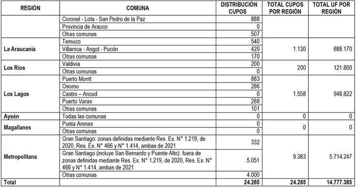 3. Reemplázase la tabla inserta en el resuelvo 3. de la resolución exenta N° 1.420 (V. y U.), de 2024, que dispone la selección de acuerdo con el número de cupos de subsidio que se señalan en la siguiente tabla: