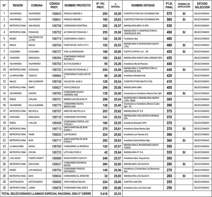 4. Apruébanse las nóminas con los 30 proyectos seleccionados en el segundo cierre del Llamado a Concurso para Proyectos de Integración Social y Territorial, dispuesto por el resuelvo 1° de la resolución exenta N° 385 (V. y U.), de 2024, nóminas que se entenderá forman parte integrante de esta resolución, conforme a lo establecido en el artículo 13° del DS N° 19 (V. y U.), de 2016.