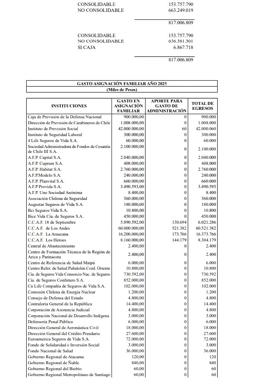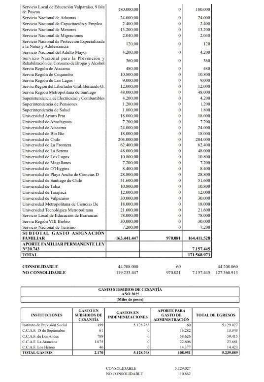 5.- El Presupuesto del Fondo Único de Prestaciones Familiares y Subsidios de Cesantía y su Anexo, para el ejercicio del año 2025, serán los siguientes: