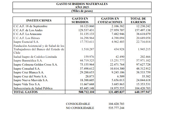 - Pagos de subsidios maternales 527.154.883