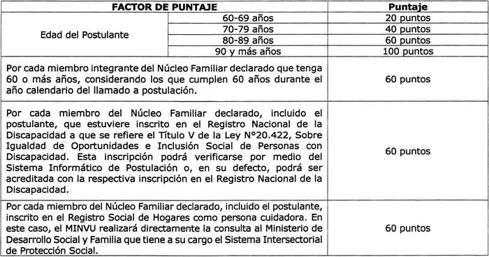 7. Dispónese que, junto con los factores de puntaje dispuestos en el artículo 25 del DS Nº 52 (V. y U.), de 2013, se otorgará un puntaje adicional conforme lo señalado en la siguiente tabla: