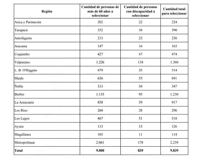 3. Para postular al llamado a que se refiere el número 1 de esta resolución exenta, los postulantes deberán ser personas mayores de más de 60 años al momento de postular, o cumplirlos durante el año calendario del llamado a postulación, lo que se acreditará presentando Cédula de Identidad vigente y/o personas con una discapacidad acreditada a través de la inscripción en el Registro Nacional de la Discapacidad a que se refiere el Título V de la Ley Nº 20.422, sobre Igualdad de Oportunidades e Inclusión Social de Personas con Discapacidad, esta inscripción podrá verificarse por medio del Sistema Informático de Postulación o, en su defecto, podrá ser acreditada con la respectiva inscripción en el Registro Nacional de la Discapacidad.