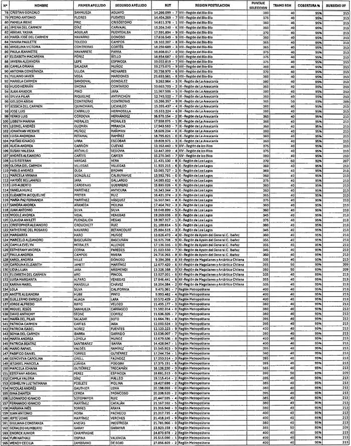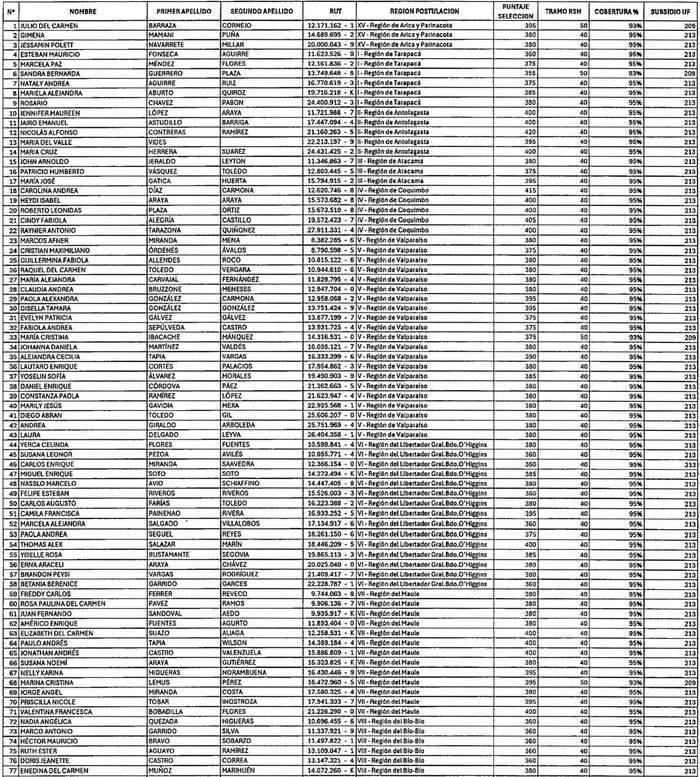 4. Publíquese en un periódico de circulación nacional y en el sitio web de este Ministerio, un aviso que indique el lugar y fecha en que serán publicadas las nóminas de postulantes seleccionados conforme al número 2 de esta resolución, las que deberán contener a lo menos el puntaje y el nombre de cada postulante beneficiado con su respectiva Cédula de Identidad y exhíbanse dichas nóminas en las oficinas de los Serviu.