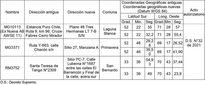 1. Autorízase a la concesionaria a modificar la dirección y coordenadas geográficas de cuatro (4) Estaciones Base, según se indica a continuación: