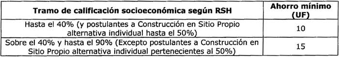4.2. Los postulantes al presente llamado deben acreditar haber enterado el siguiente ahorro mínimo, conforme la calificación socioeconómica que presenten a la fecha de su incorporación al proyecto.
