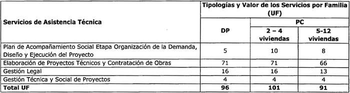 7.2. Excepcionalmente, los honorarios por Asistencia Técnica a los que se refiere el numeral 2., del artículo 3º, de la Resolución Nº 1.875 (V. y U.), de 2015, y sus modificaciones, se pagarán por familia, según tipología, de acuerdo a lo indicado en el presente cuadro: