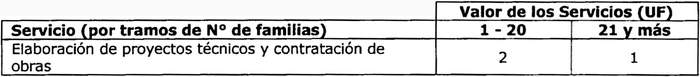 7.4. Establécese que, para aquellos proyectos ejecutados por empresas constructoras que cuenten con trabajadores capacitados y/o en proceso de certificación por parte del Servicio Nacional de Capacitación y Empleo en distintas áreas asociadas al rubro de la construcción, los servicios de asistencia técnica correspondientes al área de "Elaboración de proyectos técnicos y contratación de obras", se podrán incrementar por los montos que se indican a continuación, según tramo de unidades y de manera incremental, y de acuerdo los lineamientos descritos mediante el Oficio Ordinario mencionado en el Visto t):