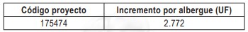c) Que, de acuerdo a lo informado por el Serviu Metropolitano mediante el oficio ordinario citado en el visto g), se detectó en forma posterior a la selección verificada mediante la resolución referida en el visto d), que al proyecto citado precedentemente no le fue asignado el total del monto para atender los gastos que pudiere irrogar el traslado y/o albergue transitorio de las familias que lo integran. Si bien el sistema informático Umbral sí los consideraba, el Serviu omitió información en la consulta practicada en el proceso de revisión de la selección a cargo de la División de Política Habitacional, respecto de las personas beneficiadas que participaban del proyecto. En la presentación del oficio ordinario indicado, Serviu acredita además las condiciones de residencia en cada uno de los lotes donde se ejecutarán los proyectos, y que dan cumplimiento a lo indicado en el marco normativo respectivo. El siguiente es el monto que debe ser incrementado en el proyecto: