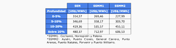 b) 11,86 [US$/kWh] para los SSMM de Cochamó, Hornopirén y Palena.