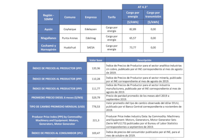 Artículo sexto: Infórmase que los valores base para la fórmula de ajuste que indexa el CFLD y CFCD del SEN y SSMM, corresponden a los siguientes índices: