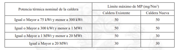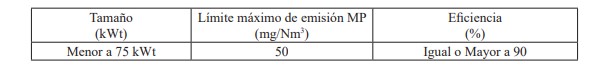 b.3) A partir de la publicación del presente decreto supremo se prohibirá dentro de la zona saturada de Temuco y Padre Las Casas, durante 24 hrs., el funcionamiento de calderas industriales y calderas de calefacción, con una potencia igual o mayor a 75 kWt., que presenten emisiones iguales o mayores a 50 mg/m 3 N de material particulado. Se eximen aquellas calderas nuevas o existentes, que usen un combustible gaseoso en forma exclusiva y permanente.