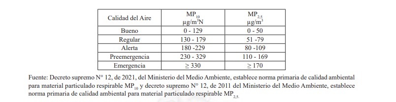 Por otra parte, los episodios de MP 10 se han reducido sustancialmente llegando a no presentarse episodios en la categoría emergencia por MP 10 durante el 2019 y 2021. En contraste, el año 2017 se registraron 10 preemergencias y 4 emergencias, mientras que el 2018, 13 preemergencias y 2 emergencias.