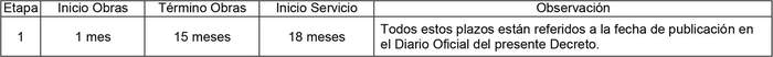 5. Los plazos de inicio y término de obras, y de inicio del servicio son los que a continuación se indican: