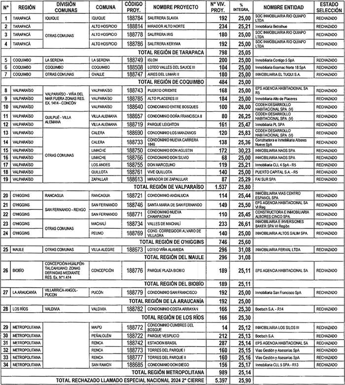 LLAMADO A CONCURSO NACIONAL ESPECIAL 2024 DS N° 19 (V. y U.), DE 2016; RES. EX. N° 385 (V. Y U), DE 2024, Y SUS MODIFICACIONES ORDENADOS POR REGIÓN