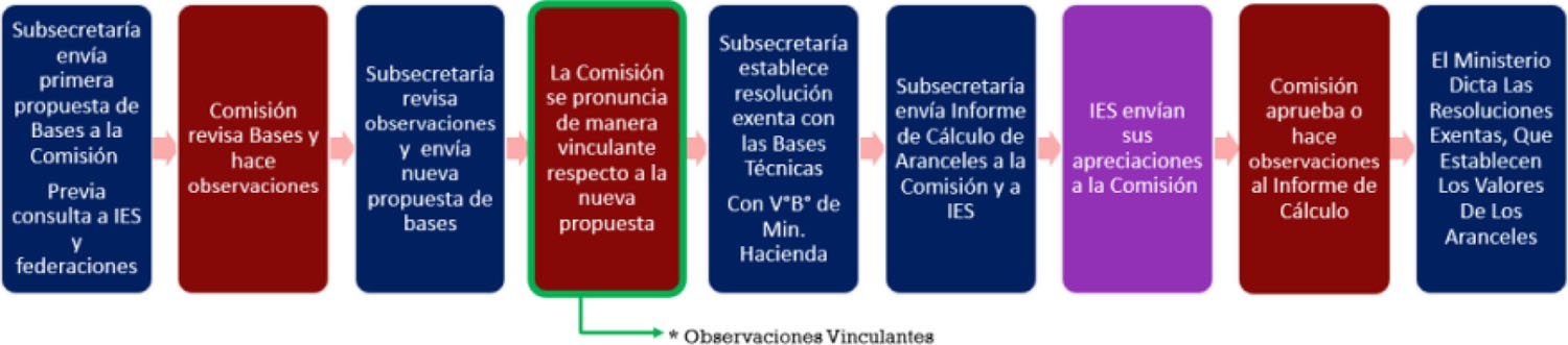 8°. Que, a fin de continuar con la implementación del régimen permanente, tal como fue señalado en el considerando anterior, el procedimiento a observar por parte de esta Subsecretaría para la incorporación de nuevos "macrogrupos" de carreras a la regulación a partir del año académico 2026, corresponde a lo dispuesto en el artículo 91 de la ley N° 21.091. Este régimen permanente considera la presentación de una primera propuesta a la Comisión de Expertos para la Regulación de Aranceles (en adelante e indistintamente, "CERA", "la Comisión" o "Comisión Experta") ante las propuestas de Bases Técnicas presentadas por la Subsecretaría, y otorga un carácter vinculante a las observaciones planteadas en la segunda revisión efectuada por parte de la CERA, por lo cual las eventuales recomendaciones planteadas en dicha instancia por la Comisión deben, necesariamente, ser incorporadas en dichas Bases Técnicas.