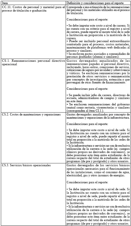 En un primer nivel, el informe de la CERA planteó observaciones de carácter formal, orientadas a favorecer la comprensión lectora de la metodología y sus componentes. Entre ellas se consideran ajustes al glosario presentados en la propuesta; la explicitación de los campos utilizados de las bases de datos de matrícula y oferta académica administradas por el Servicio de Información sobre Educación Superior administrado por esta Subsecretaría ("SIES"); la corrección de un conjunto de errores de redacción, tipeo y referencias a tablas y ecuaciones; junto con la necesidad de explicitar con una mayor precisión las definiciones sobre la matrícula de la base de datos de beneficios estudiantiles y los ítems de costos asociados a los convenios asistenciales docentes.
