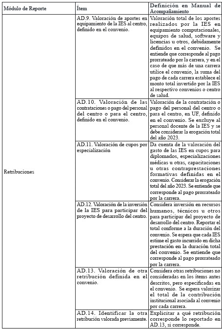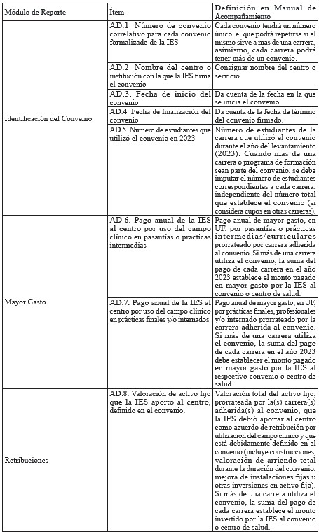 Tabla 2 - Ítems del módulo de Convenios Asistenciales Docentes