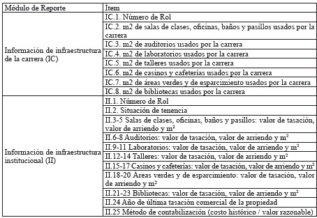 Tabla 3 - Ítems de los módulos de infraestructura