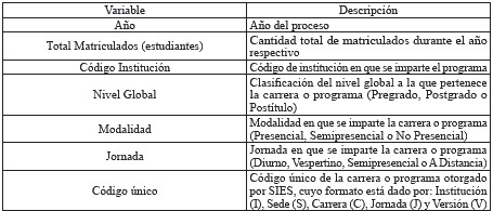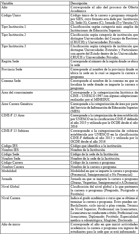 Tabla 5 - Variables utilizadas de oferta académica 2023