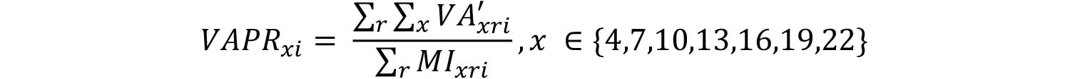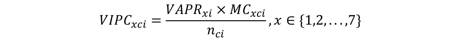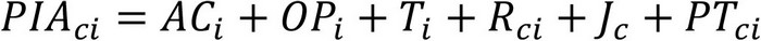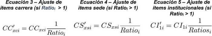 A partir de la suma de los valores que puede adoptar cada una de las variables, se construye un preíndice (PIA) para cada carrera "c" impartida por una Institución "i", cuya forma se observa en las Ecuaciones 24 y 25 siguientes. En ellas, se denota por "AC i " el valor asociado a los años de acreditación de la Institución que imparte la carrera, "I i " su acreditación o no en el área de investigación en el caso de las carreras profesionales, "OP i " la acreditación en un área optativa para carreras técnico-profesionales , "T i " el valor asociado al tamaño de la Institución que imparte la carrera, "R ci " el indicador establecido a partir de la localización de la carrera y/o de la Institución que la imparte y la jornada de la carrera "J c ". Adicionalmente, para el cálculo del preíndice se incluye una variable para las carreras profesionales que da cuenta de la complejidad institucional, por lo que se considera la acreditación de doctorados "AD i ". De igual forma, la variable asociada a la pertinencia territorial aplicable a las carreras técnico-profesionales se denota como "PT ci ".