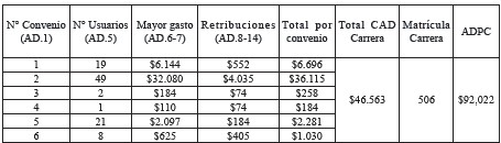 Tabla 6 - Ejemplo de cálculo de Costos asociados a Convenios Asistenciales Docentes por estudiante (en M$)