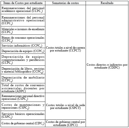 2.5. Determinación del costo total por estudiante
