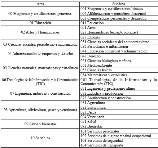 Tabla 10 - Áreas y Subáreas CINE-F UNESCO 2013