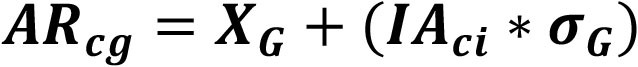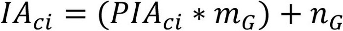 Los límites del eje Y serán definidos tomando en consideración las características de la distribución de los costos totales por estudiante en el macrogrupo respectivo, no obstante, en cualquier caso, estos límites deben abarcar como mínimo los costos por estudiante informados por el 50% de las carreras que conforman el respectivo macrogrupo. En base a estos parámetros, se calcula para cada carrera "c" impartida por una institución "i" su respectivo índice de agrupación (IA) de acuerdo a la fórmula descrita en la Ecuación 25, considerando tanto el preíndice de la carrera (PIA), y la pendiente "m" y término independiente "n" de la ecuación de la recta correspondiente al macrogrupo "G".