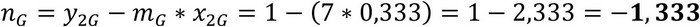 Para efectos de ilustrar el procedimiento antes descrito, considérese el ejemplo de un macrogrupo "G" de carreras profesionales que posee un costo promedio por estudiante de M$ 4.000 con una desviación estándar de M$ 1.000. Supóngase que los valores mínimo y máximo observados para el PIA en carreras profesionales son de 1 y 7 respectivamente, por lo que estos constituyen el rango del eje "x". Para el eje "y", supóngase que se establece un límite inferior y superior de -1 y 1, respectivamente. En base a estos parámetros, es posible calcular la pendiente "m" y el término independiente "n" de la recta de este macrogrupo según lo ilustrado en las siguientes Ecuaciones 27 y 28.
