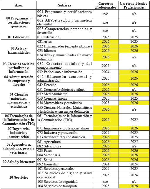 4.1. Carreras a regular a partir de 2026