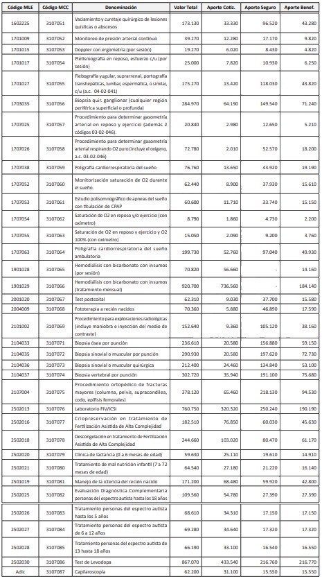 8. Se incorporan además, 6 nuevas prestaciones que también han sido incluidas en el Arancel MLE, manteniendo su precio y aporte estatal para ambos Aranceles, las que se detallan en el Anexo II de la presente resolución.