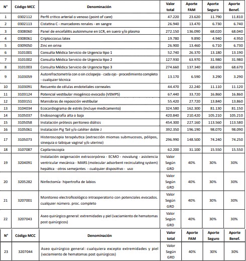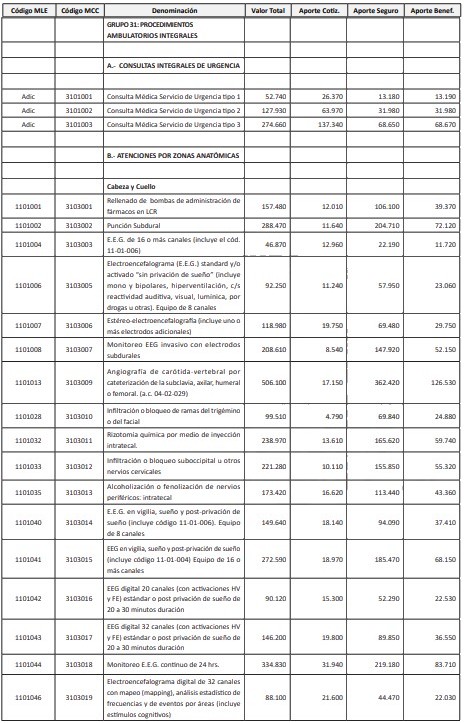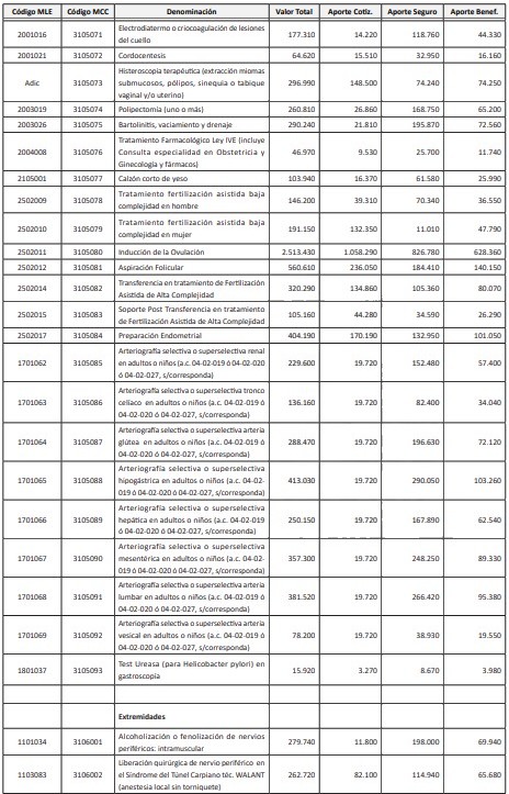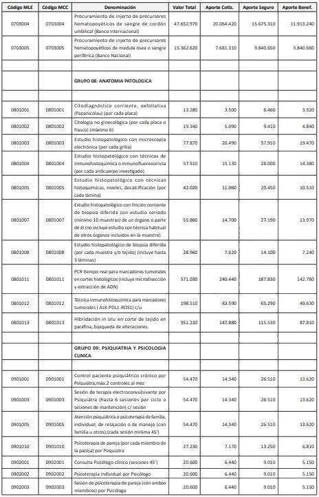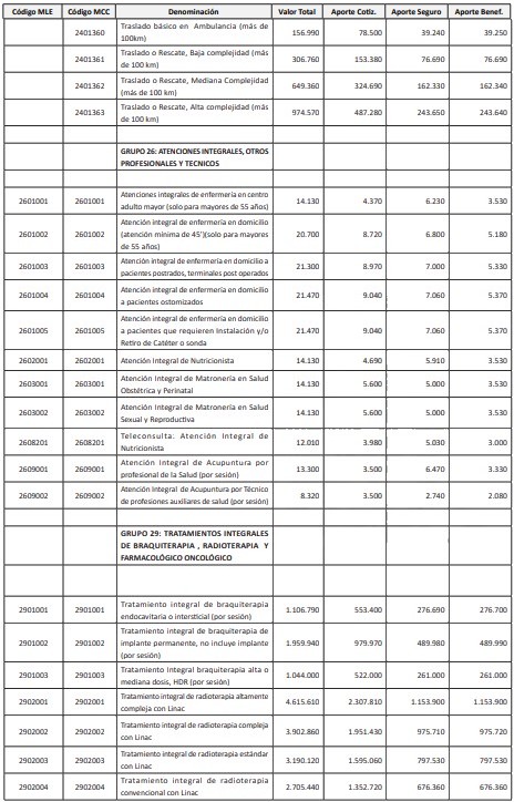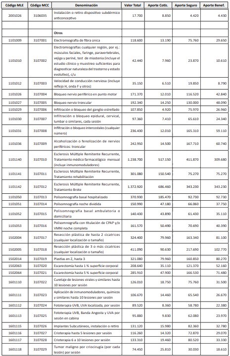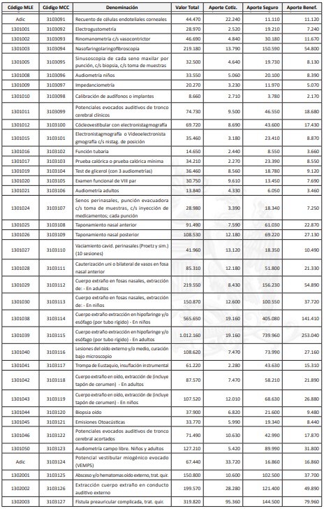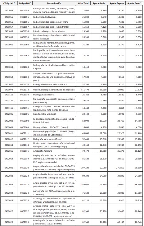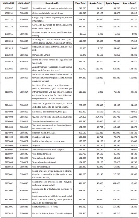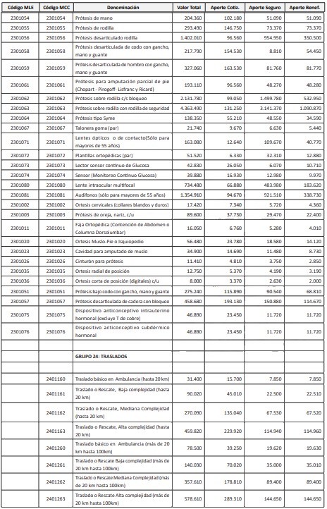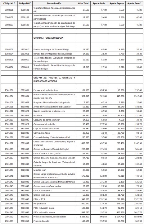 D.O. 18.10.2025valores señalados para las prestaciones que se consignan en el Grupo N° 23 (prótesis) del Anexo IV del Arancel, son solamente referenciales para determinar los aportes correspondientes.