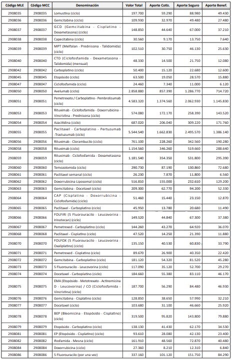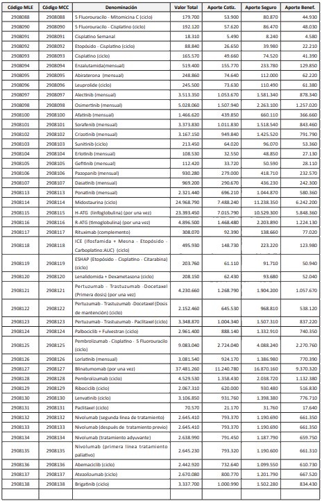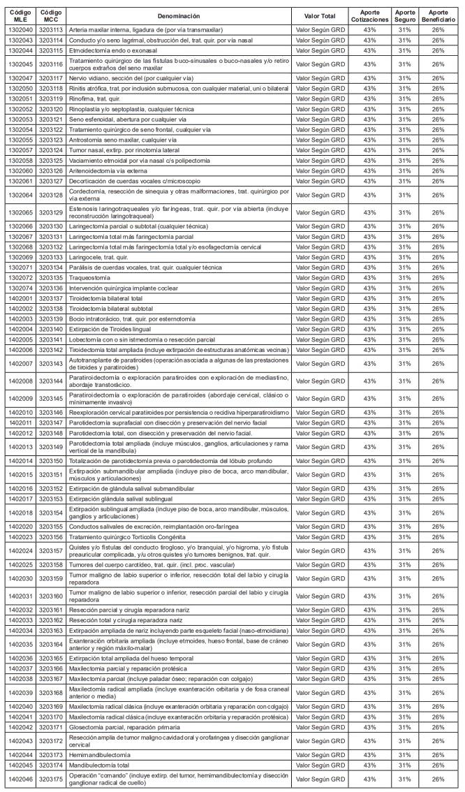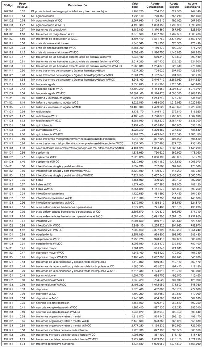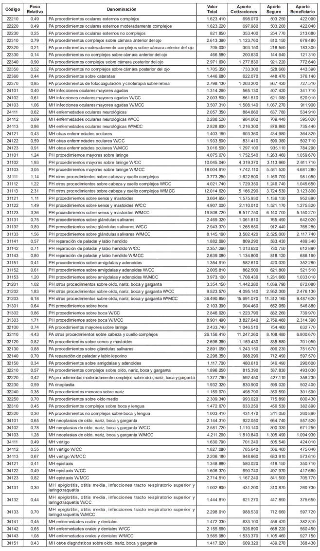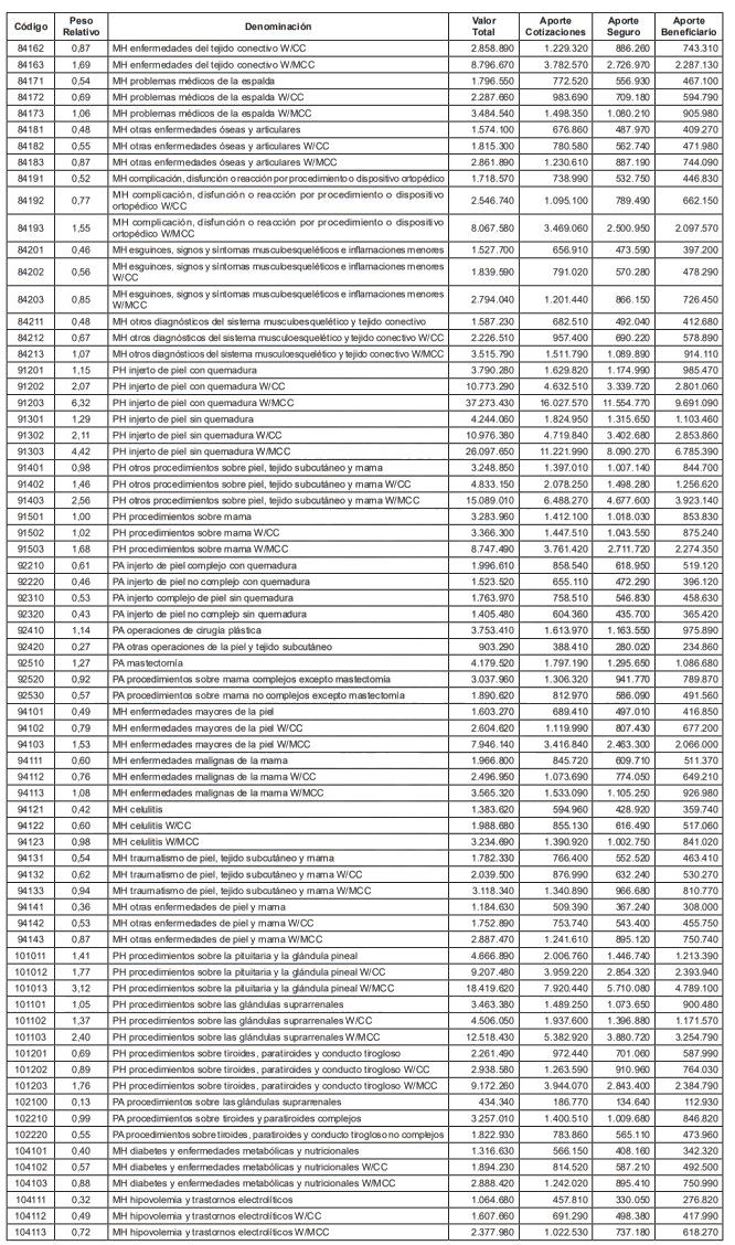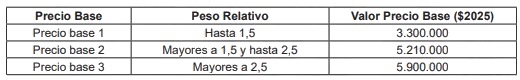 D.O. 18.10.2025Los precios base GRD y puntos de corte establecidos en el Arancel MCC son los siguientes: