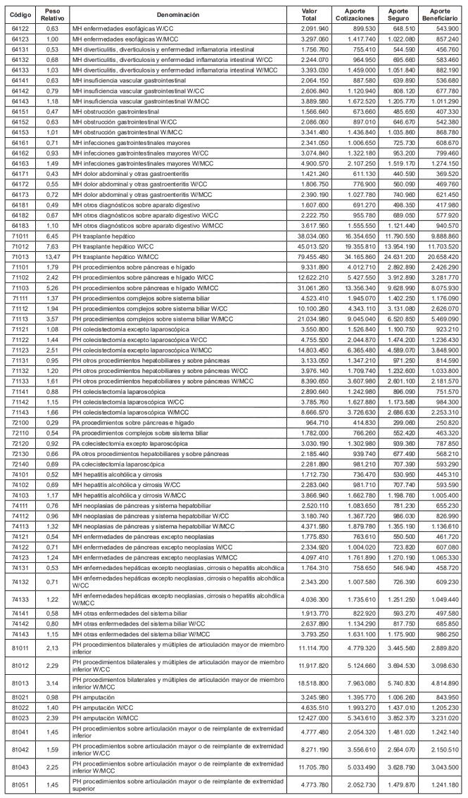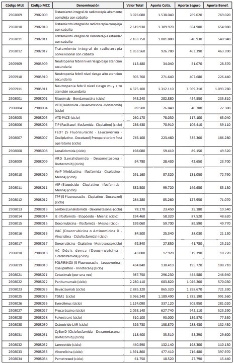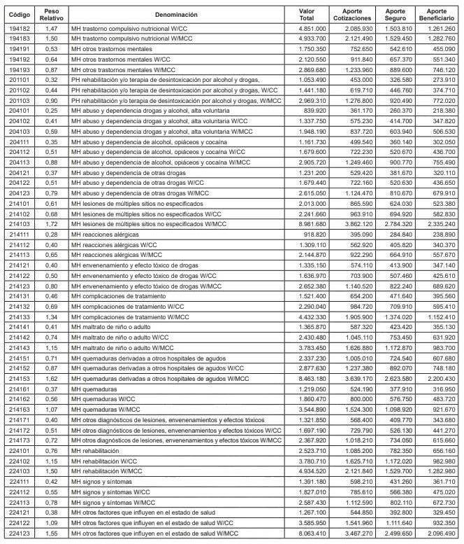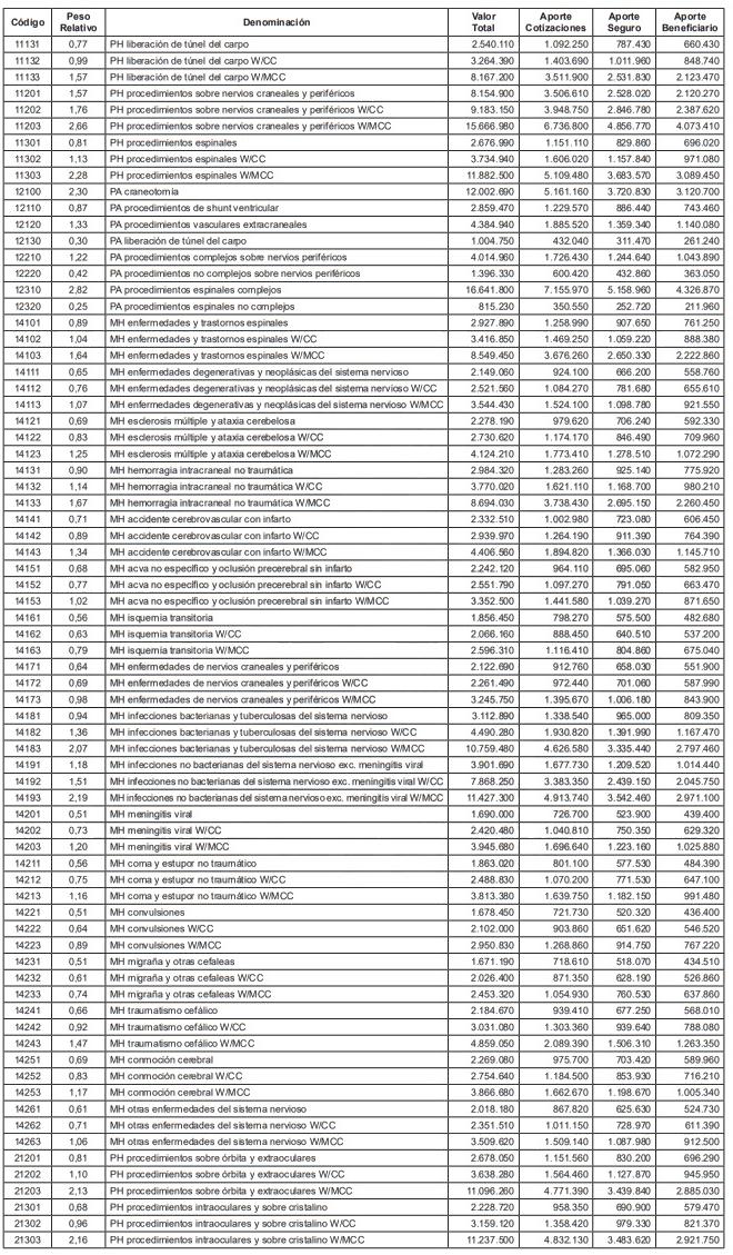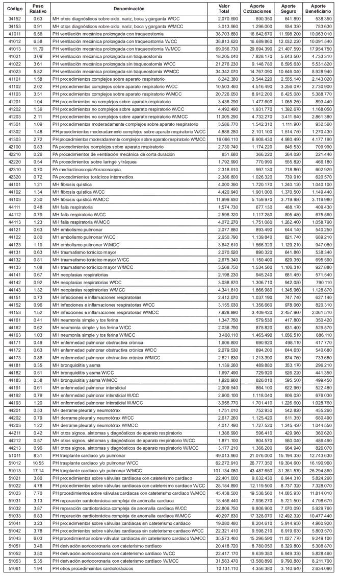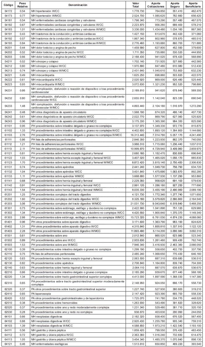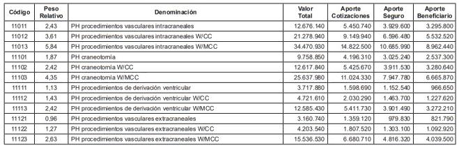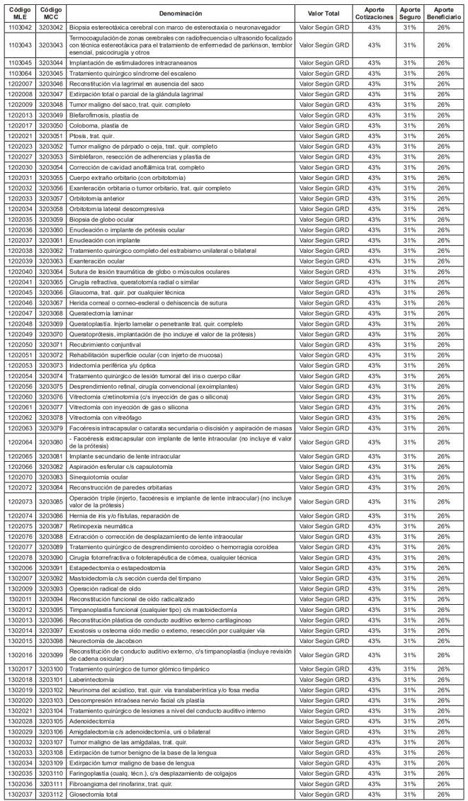 D.O. 18.10.2025de Tecnología, que considera prestaciones, dispositivos, fármacos, prótesis o insumos que son parte de una intervención sanitaria y se pagan adicional al pago otorgado por el mecanismo de pago GRD y respecto de los procedimientos CIE9-MC definidos (Anexo III). El pago de estos ajustes será financiado en un 50% con Aporte Cotización (FAM) y, el otro 50% con Aporte Seguro.