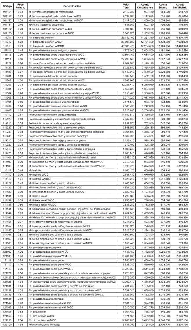 Valor del GRD: Es el producto entre el Precio Base y el Peso Relativo del GRD correspondiente.