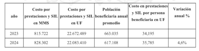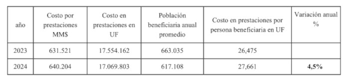 El gasto anual de prestaciones de salud por beneficiario experimentó una variación anual de 4,5% durante el período 2023-2024.