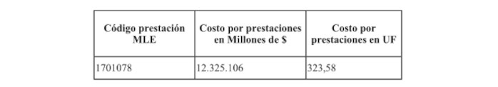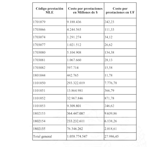 Corresponde al costo de las nuevas prestaciones codificadas en el arancel Fonasa MLE 2024: