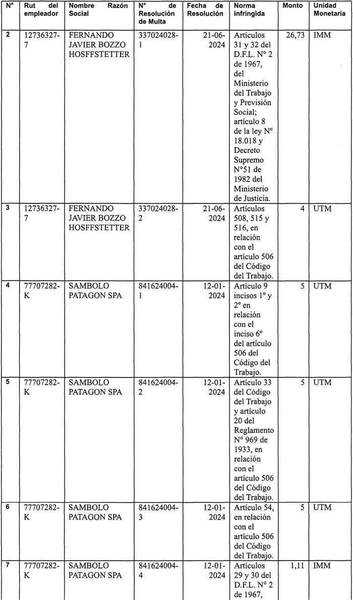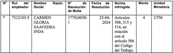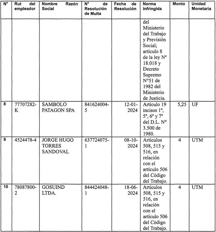 1) Notifíquese mediante publicación en el Diario Oficial, las Resoluciones de Multas descritas en el considerando Nº 1) de la presente resolución. Practicada la notificación, las resoluciones de multa adquirirán mérito ejecutivo una vez agotado los plazos para ejercer las acciones judiciales y administrativas en su contra (Art. 503, 506 ter y 512 del Código del Trabajo).
