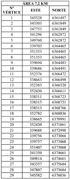 1. Establézcase, a partir del 2 de abril de 2025, como área reglamentada, el polígono de 29 vértices, determinado por las coordenadas UTM, señaladas a continuación: