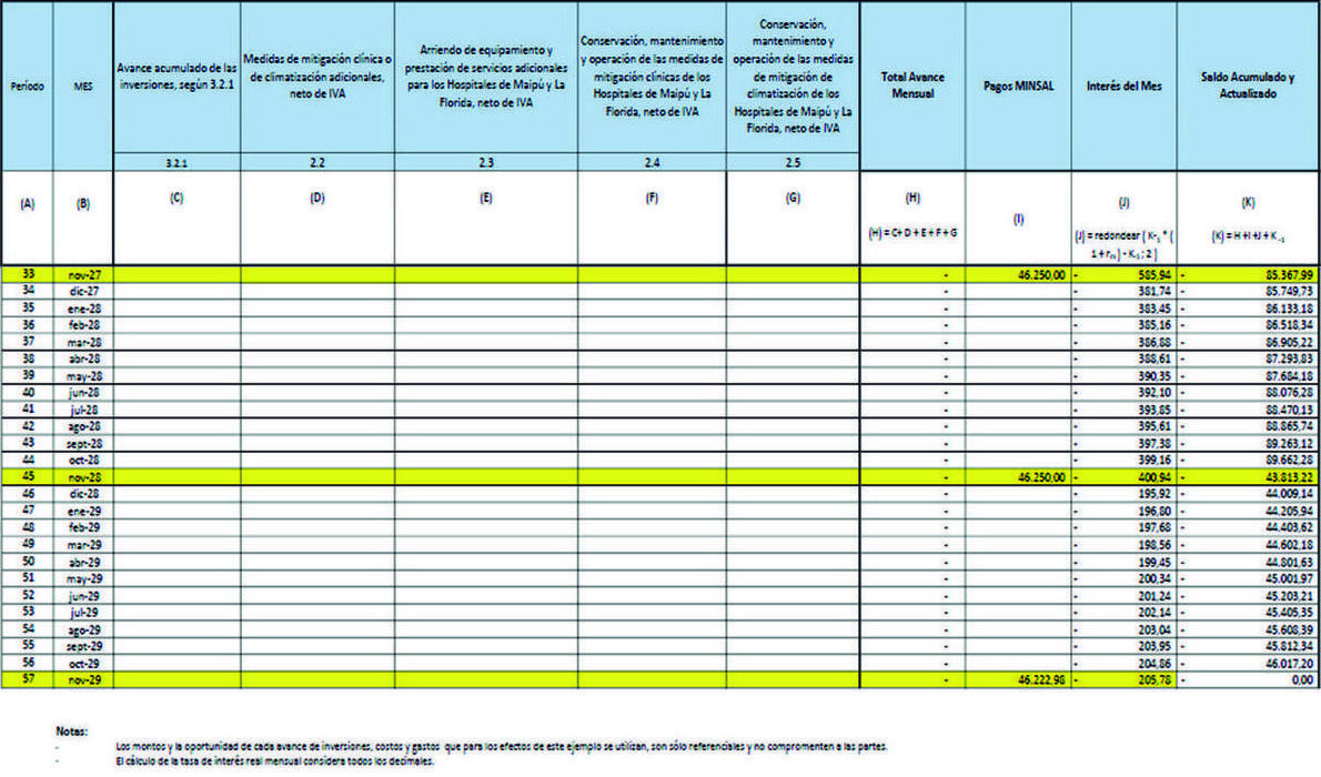 a. El último día hábil del mes de noviembre del año 2027, el Minsal pagará a la Sociedad Concesionaria un máximo de UF 46.250 (Cuarenta y seis mil doscientas cincuenta Unidades de Fomento).