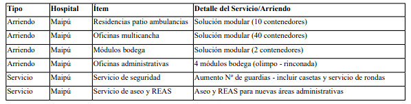 Tabla N° 1: Arriendo de Equipamiento y Prestación de Servicios - Hospital de Maipú