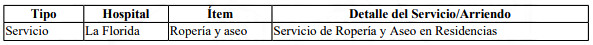 Tabla N° 4: Arriendo de Equipamiento y Prestación de Servicios - Hospital de La Florida