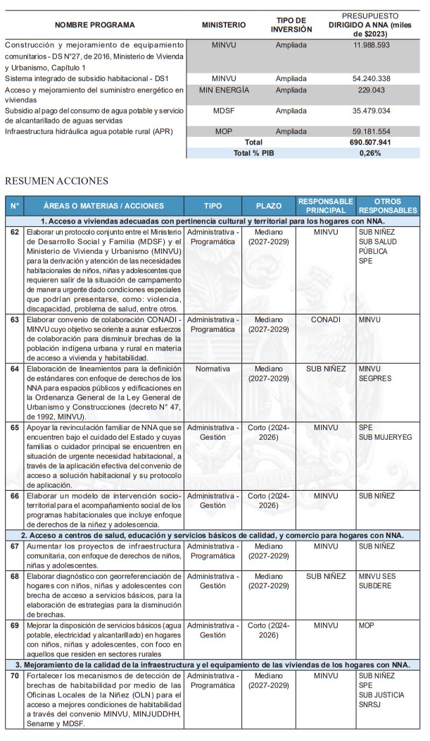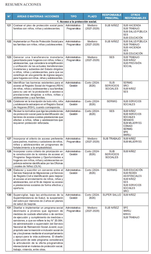 Por lo tanto, el Plan de Acción de esta política incluye el desarrollo de un piso de protección social para niños, niñas y adolescentes, buscando la cobertura universal de protección social como un paso clave para mejorar su bienestar y asegurar sus derechos.