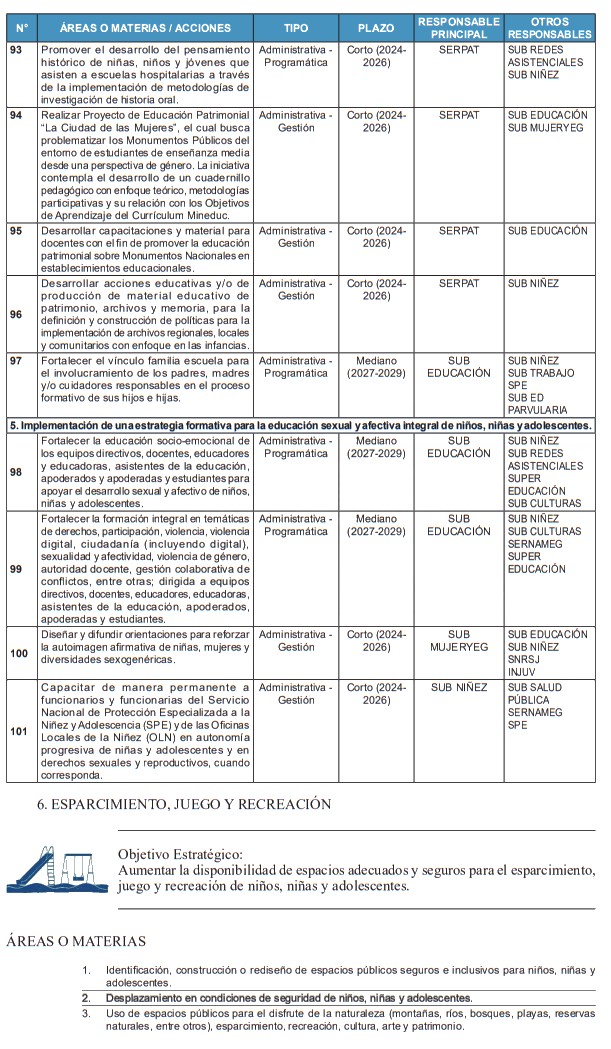 De esta manera, esta estrategia se constituye como una iniciativa interinstitucional clave dentro de la Política Nacional de la Niñez y Adolescencia 2024-2032 y su Plan de Acción, asegurando que no solo se dé una respuesta momentánea al abordaje de la ESNNA, sino que sea una acción sostenida en el tiempo.