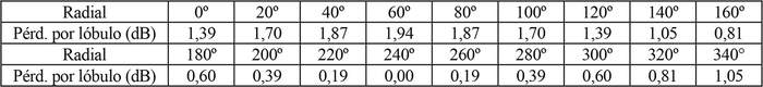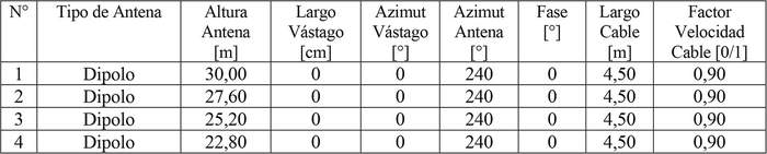 - Arreglo de antena de acuerdo a la siguiente tabla: