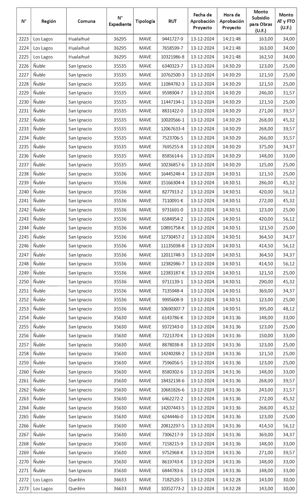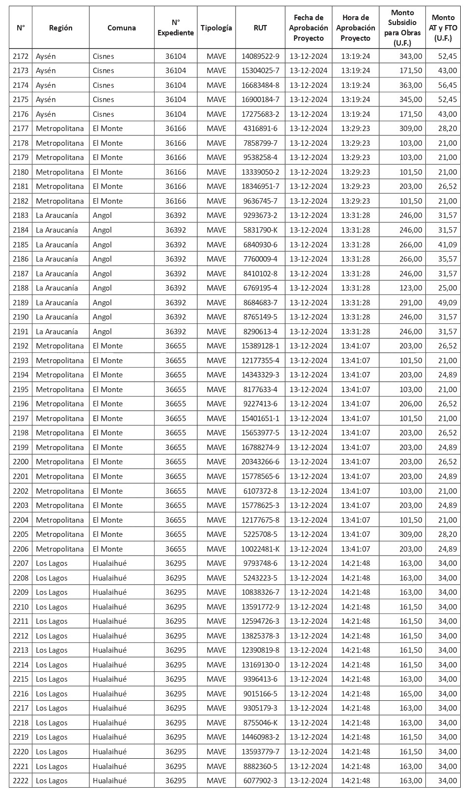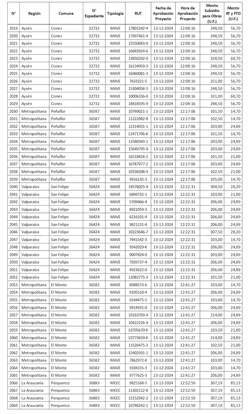 2. Apruébase la nómina de familias que han sido seleccionadas para el otorgamiento de subsidios habitacionales del Programa de Habitabilidad Rural en su título II, regulado por el DS Nº 10 (V. y U.), de 2015, correspondientes al llamado a postulación nacional en condiciones especiales, regulado por la resolución exenta citada en el visto d), la que se adjunta a la presente resolución y se entenderá como parte integrante de ésta.