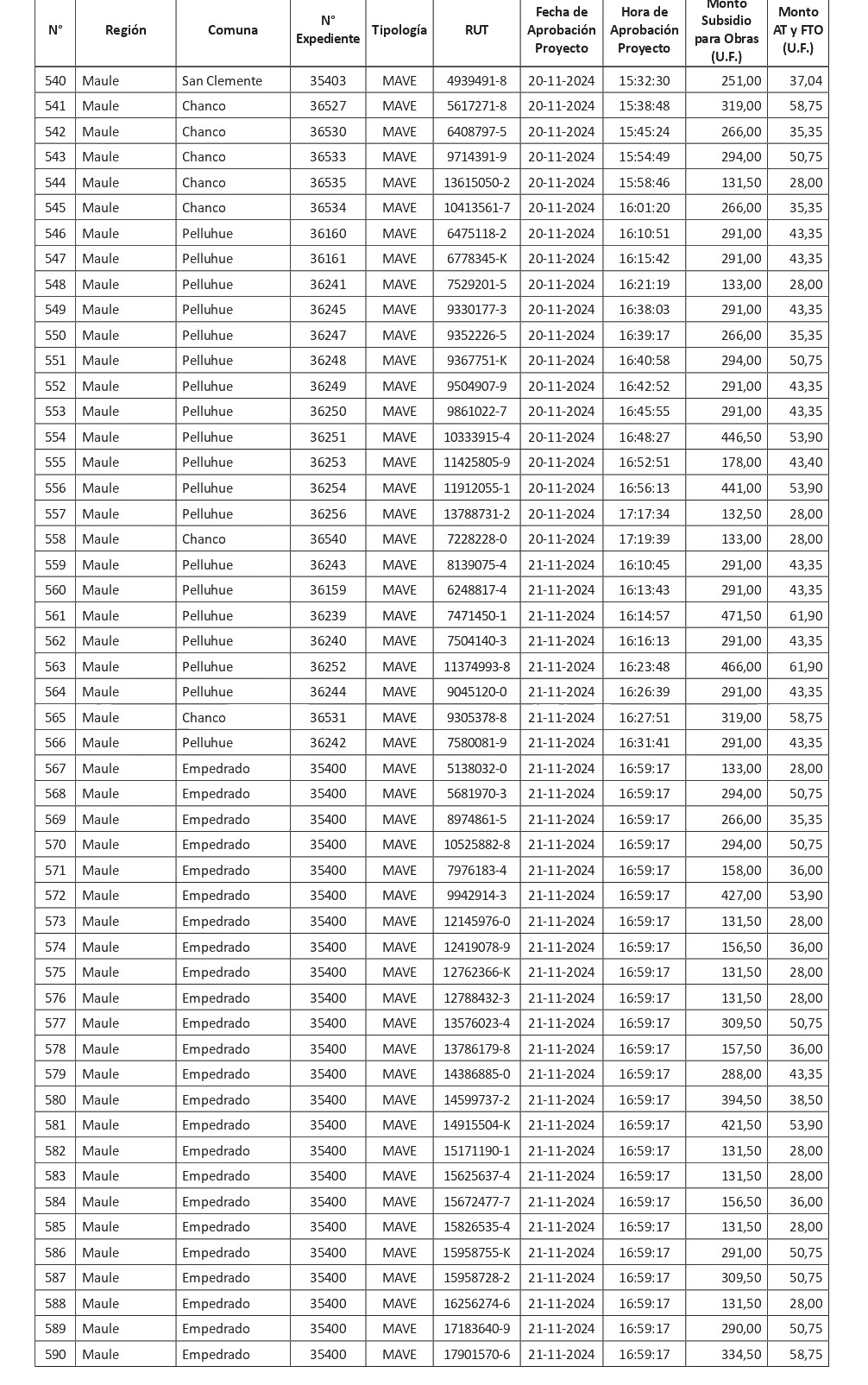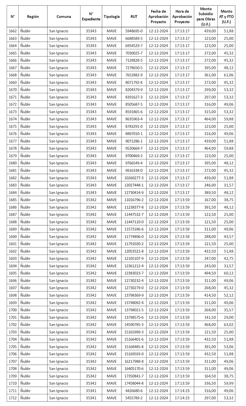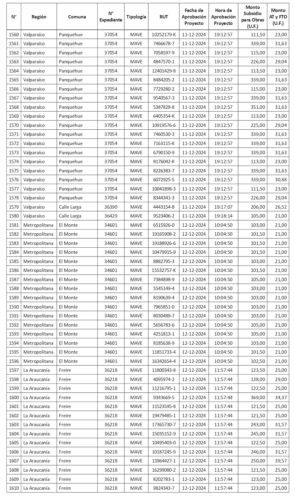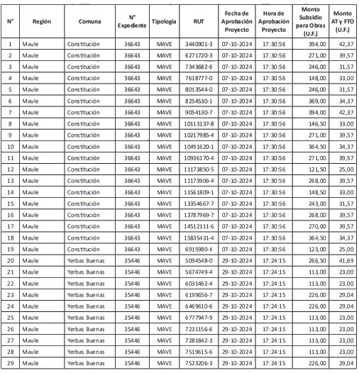 2. Apruébase la nómina de familias que han sido seleccionadas para el otorgamiento de subsidios habitacionales del Programa de Habitabilidad Rural en su título II, regulado por el DS Nº 10 (V. y U.), de 2015, correspondientes al llamado a postulación nacional en condiciones especiales, regulado por la resolución exenta citada en el visto d), la que se adjunta a la presente resolución y se entenderá como parte integrante de ésta.