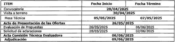 Cronograma del proceso:
